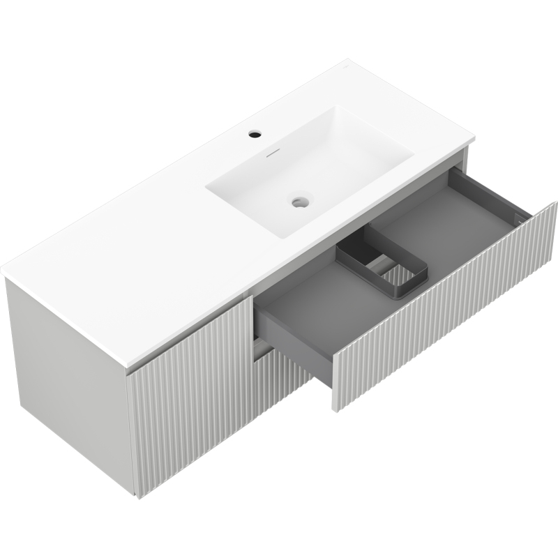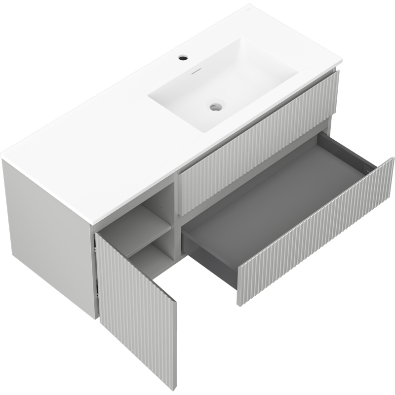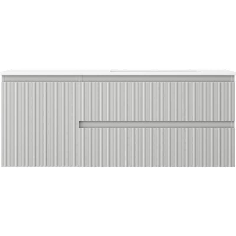 Kúpeľňová skrinka Mexen Rivel 120 cm s umývadlom Otis pravým, 2S, 1D, drážkovaná, šedá/matne biela - 91A23-12047-3-BBFFF62-W18P01