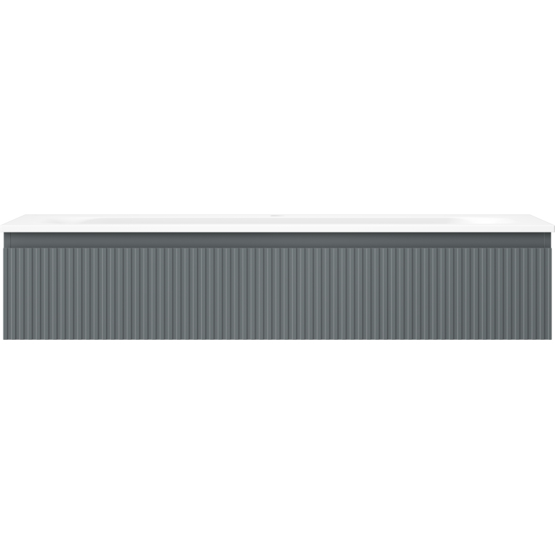 Špecifikácia produktu: Rozmery skrinky: Šírka: 120 cm Hĺbka: 46 cm Výška: 23,5 cm Farba korpusu: Matný grafit Materiál korpusu: Lakovaná doska Farba čela: Matný grafit Materiál čela: Lakovaná MDF doska Štruktúra čela: Drážkovaná Počet zásuviek Povrch odolný voči UV žiareniu Rozmery umývadla: Šírka: 121 cm Hĺbka: 46,5 cm Výška: 16,5 cm Farba umývadla: Matná biela Materiál umývadla: Konglomerát Otvor na prepad: Áno Otvor na batériu: Áno Zmontovaný výrobok