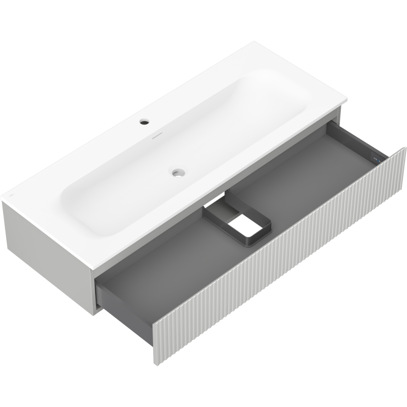 Kúpeľňová skrinka Mexen Rivel 120 cm s umývadlom Vela, 1 zásuvka, drážkovaná, matne šedá/matne biela - 91A20-12023-1-BF62-W23M01