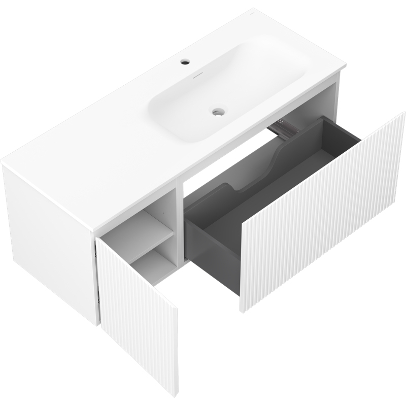 Kúpeľňová skrinka Mexen Rivel 120 cm s umývadlom Vela pravá, 1S, 1D, drážkovaná, matná biela - 91A23-12047-3-BBFF01-W23P01