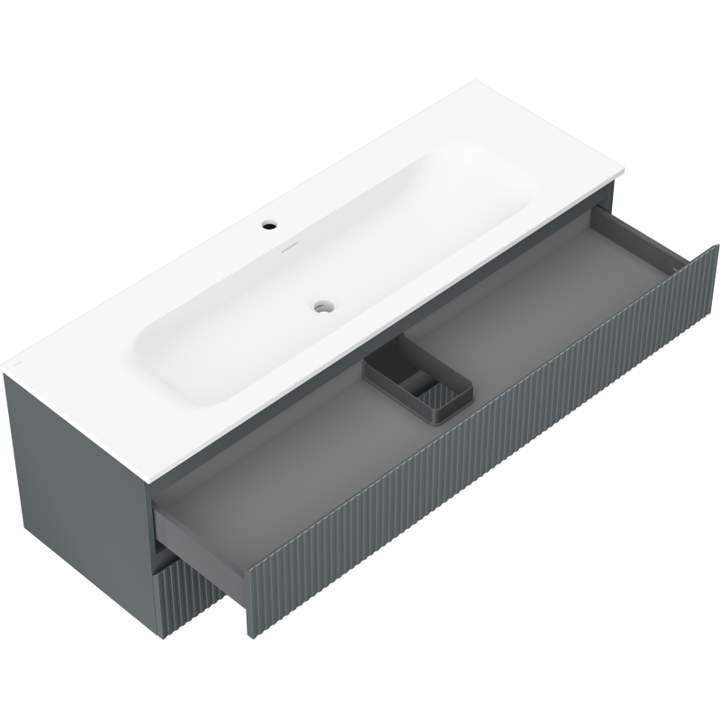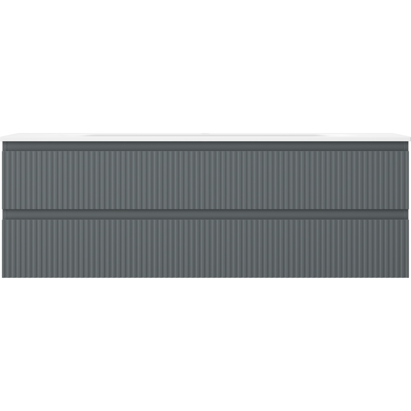Kúpeľňová skrinka Mexen Rivel 140 cm s umývadlom Vela, 2 zásuvky, drážkovaná, grafit matný/biela matná - 91A20-14047-2-BFF66-W23M