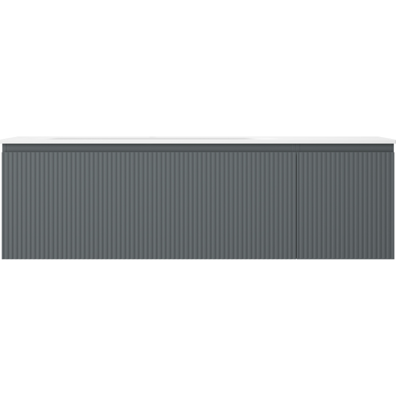 Kúpeľňová skrinka Mexen Rivel 160 cm s ľavým umývadlom Vela, 1S, 1D, drážkovaná, grafit matný/biela matná - 91A23-16047-3-BBFF66-W23L01