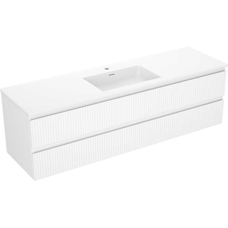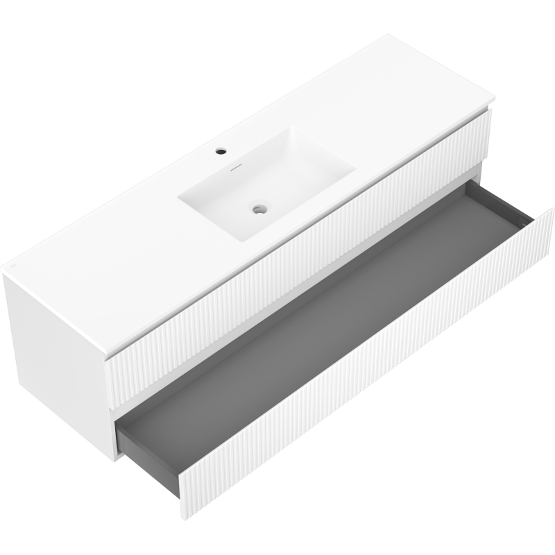 Kúpeľňová skrinka Mexen Rivel 160 cm s umývadlom Otis, 2 zásuvky, drážkovaná, matná biela - 91A20-16047-2-BFF01-W18M01
