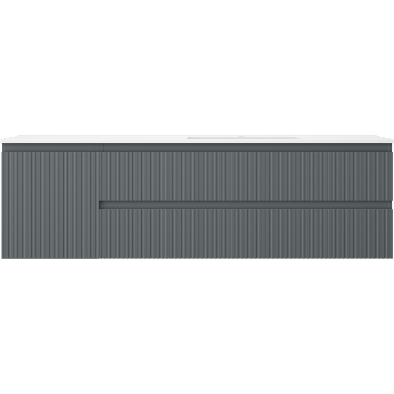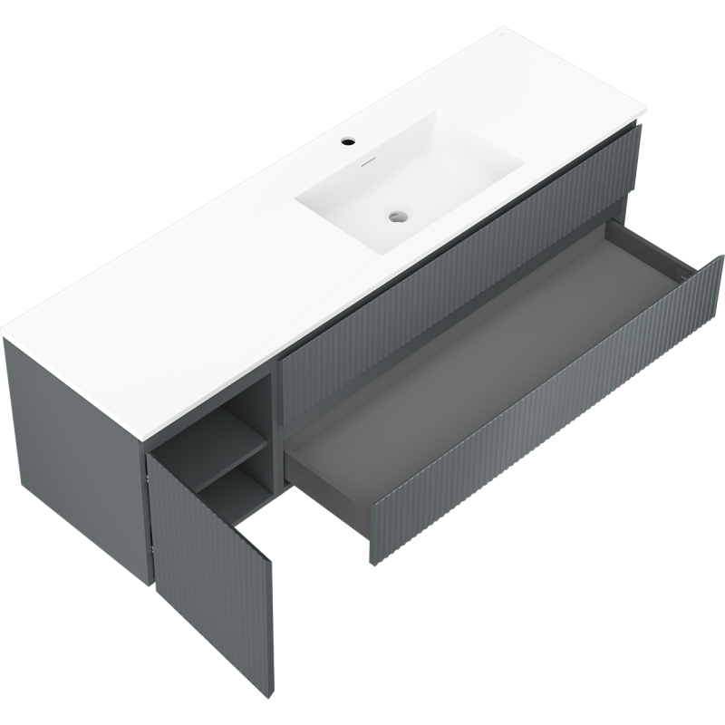Kúpeľňová skrinka Mexen Rivel 160 cm s umývadlom Otis pravým, 2S, 1D, drážkovaná, grafit/matná biela - 91A23-16047-3-BBFFF66-W18P01