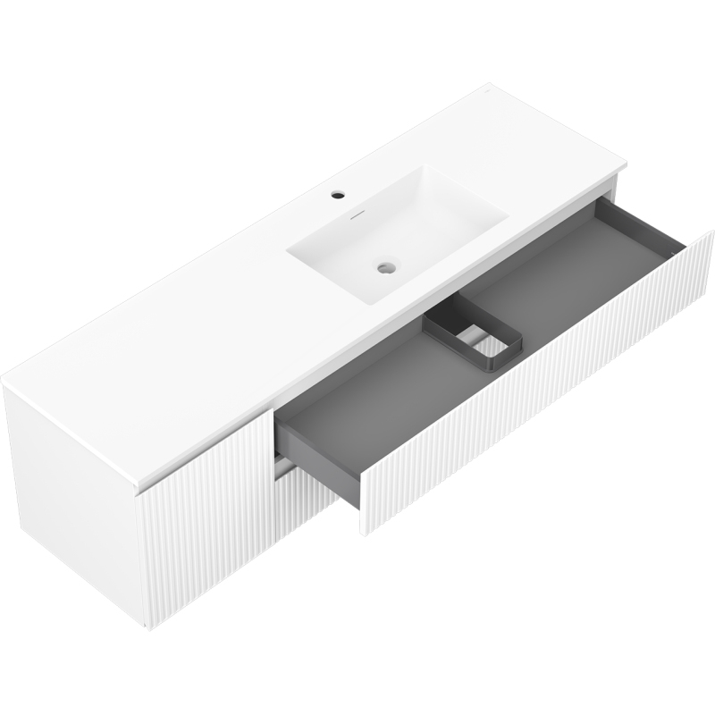 Kúpeľňová skrinka Mexen Rivel 160 cm s umývadlom Otis pravým, 2S, 1D, drážkovaná, matná biela - 91A23-16047-3-BBFFF01-W18P01