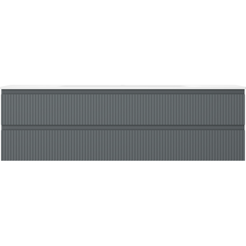 Kúpeľňová skrinka Mexen Rivel 160 cm s umývadlom Vela, 2 zásuvky, drážkovaná, grafit matný/biela matná - 91A20-16047-2-BFF66-W23M