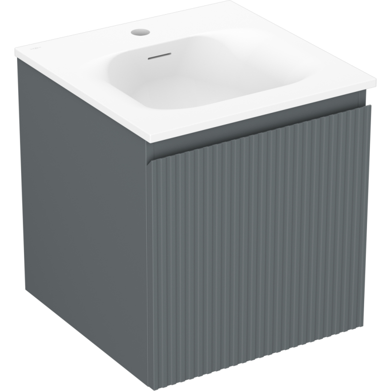 Kúpeľňová skrinka Mexen Rivel 45 cm s umývadlom Vela, 1 zásuvka, drážkovaná, grafit matný/biela matná - 91A20-04547-1-BF66-W23M01