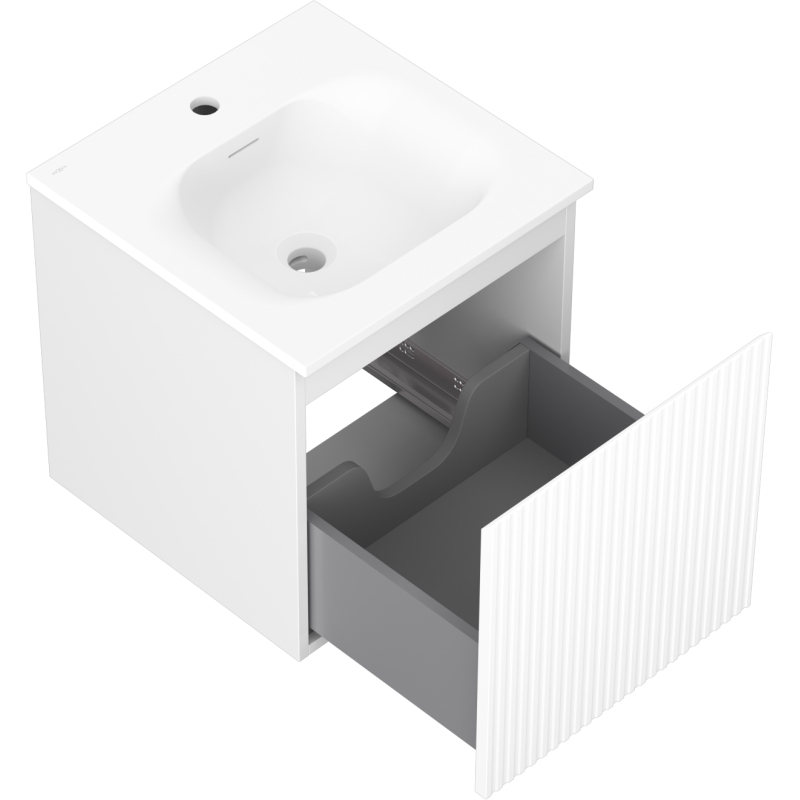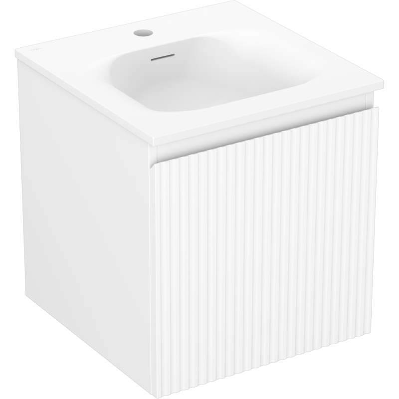 Kúpeľňová skrinka Mexen Rivel 45 cm s umývadlom Vela, 1 zásuvka, drážkovaná, matná biela - 91A20-04547-1-BF01-W23M01