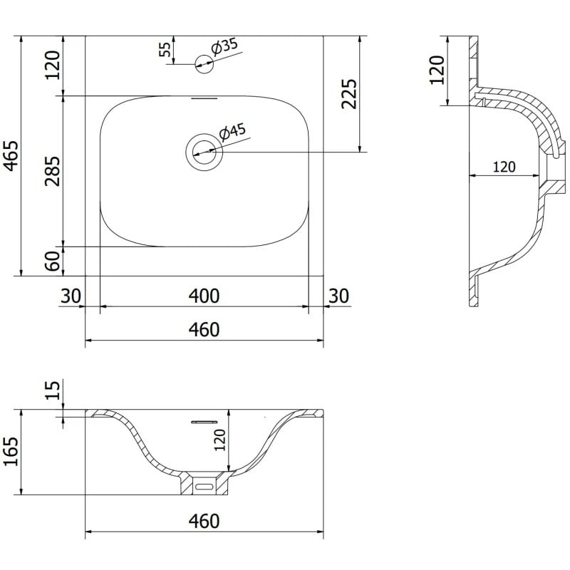 Špecifikácia produktu: Rozmery skrinky: Šírka: 45 cm Hĺbka: 46 cm Výška: 47 cm Farba korpusu: Matná biela Materiál korpusu: Lakovaná doska Farba čela: Matná biela Materiál čela: Lakovaná MDF doska Štruktúra čela: Drážkovaná Počet zásuviek: 1 odolný voči UV žiareniu Rozmery umývadla: Šírka: 46 cm Hĺbka: 46,5 cm Výška: 16,5 cm Farba umývadla: Matná biela Materiál umývadla: Konglomerát Otvor pre prepad: Áno Otvor pre batériu: Áno Zmontovaný výrobok