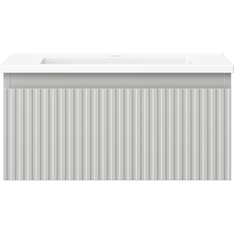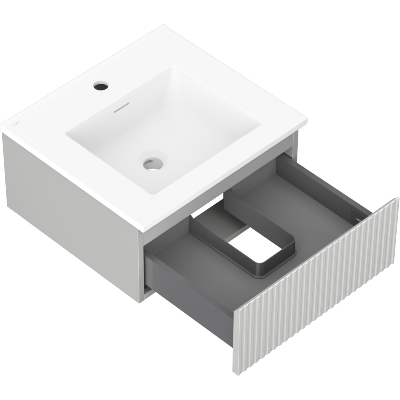 Kúpeľňová skrinka Mexen Rivel 50 cm s umývadlom Otis, 1 zásuvka, drážkovaná, matne šedá/matne biela - 91A20-05023-1-BF62-W18M01
