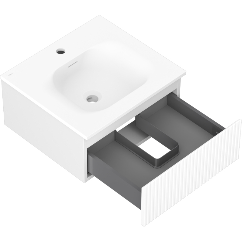Kúpeľňová skrinka Mexen Rivel 50 cm s umývadlom Vela, 1 zásuvka, drážkovaná, matná biela - 91A20-05023-1-BF01-W23M01