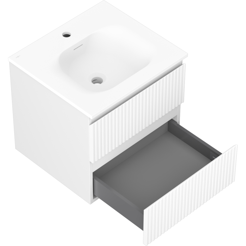 Kúpeľňová skrinka Mexen Rivel 50 cm s umývadlom Vela, 2 zásuvky, drážkovaná, matná biela - 91A20-05047-2-BFF01-W23M01