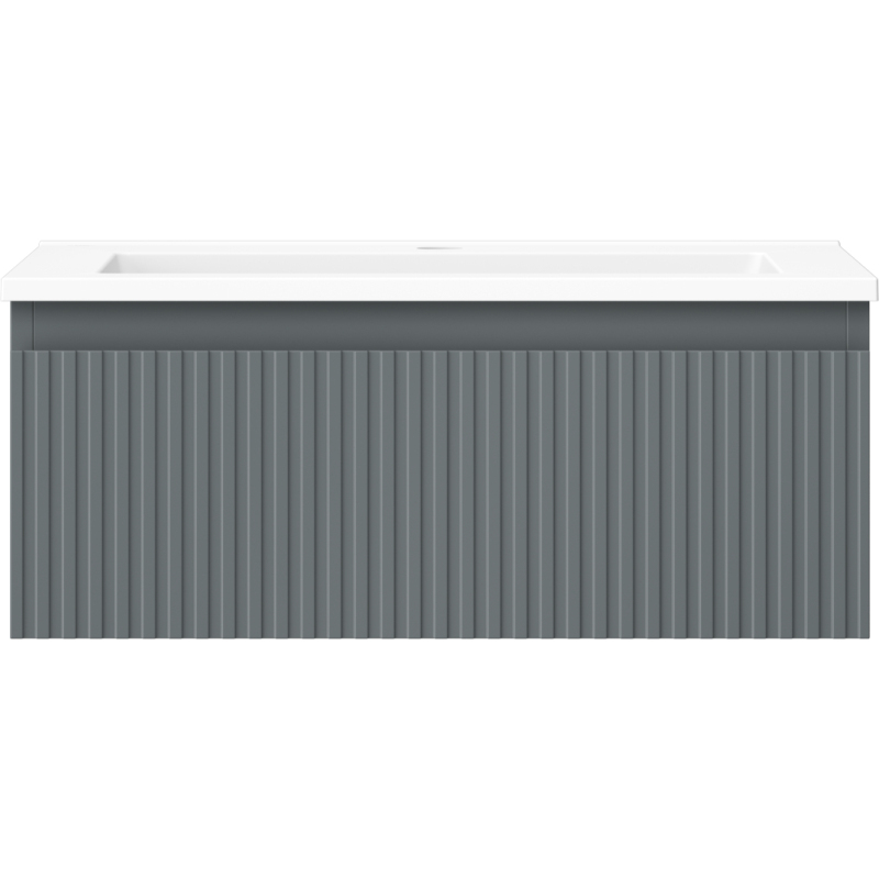 Špecifikácia produktu: Rozmery skrinky: Šírka: 60 cm Hĺbka: 46 cm Výška: 23,5 cm Farba korpusu: Matný grafit Materiál korpusu: Lakovaná doska Farba čela: Matný grafit Materiál čela: Lakovaná MDF doska Štruktúra čela: Drážkovaná Počet zásuviek: Povrch odolný voči UV žiareniu Rozmery umývadla: Šírka: 61 cm Hĺbka: 46,5 cm Výška: 16,5 cm Farba umývadla: Matná biela Materiál umývadla: Konglomerát Otvor pre prepad: Áno Otvor pre batériu: Áno Zmontovaný výrobok