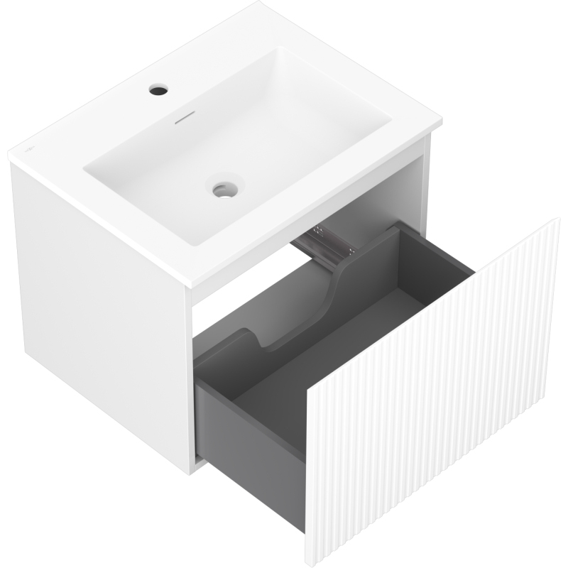 Kúpeľňová skrinka Mexen Rivel 60 cm s umývadlom Otis, 1 zásuvka, drážkovaná, matná biela - 91A20-06047-1-BF01-W18M01