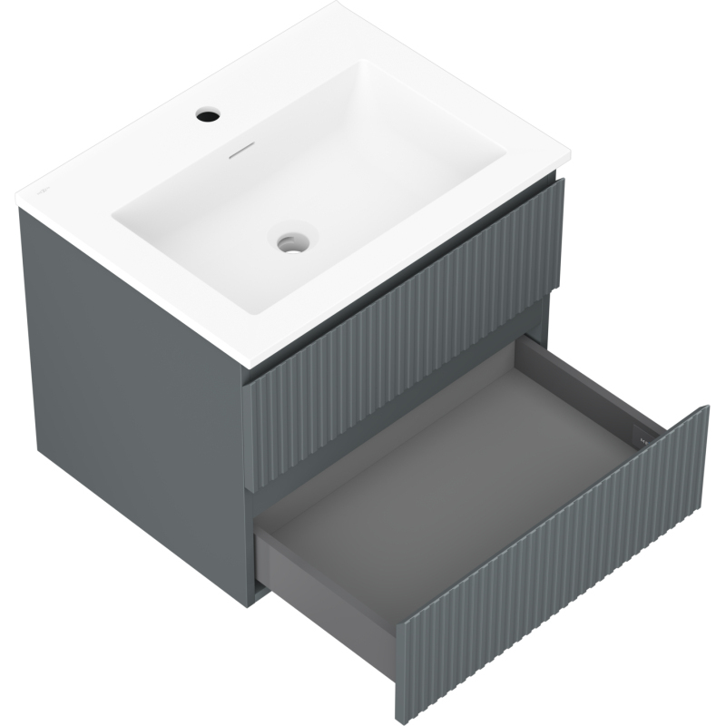 Kúpeľňová skrinka Mexen Rivel 60 cm s umývadlom Otis, 2 zásuvky, drážkovaná, grafit matný/biela matná - 91A20-06047-2-BFF66-W18M0