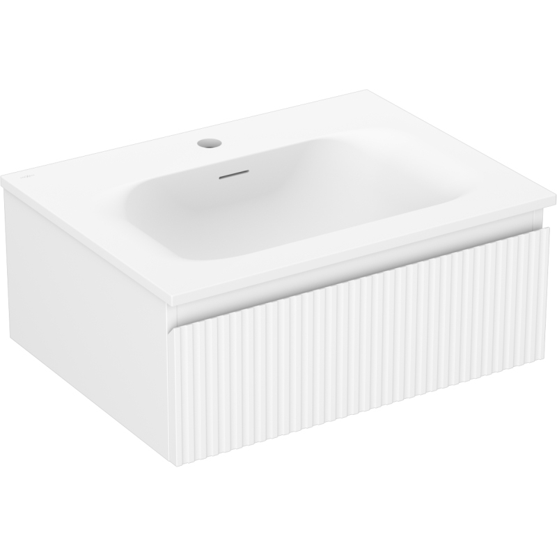Kúpeľňová skrinka Mexen Rivel 60 cm s umývadlom Vela, 1 zásuvka, drážkovaná, matná biela - 91A20-06023-1-BF01-W23M01