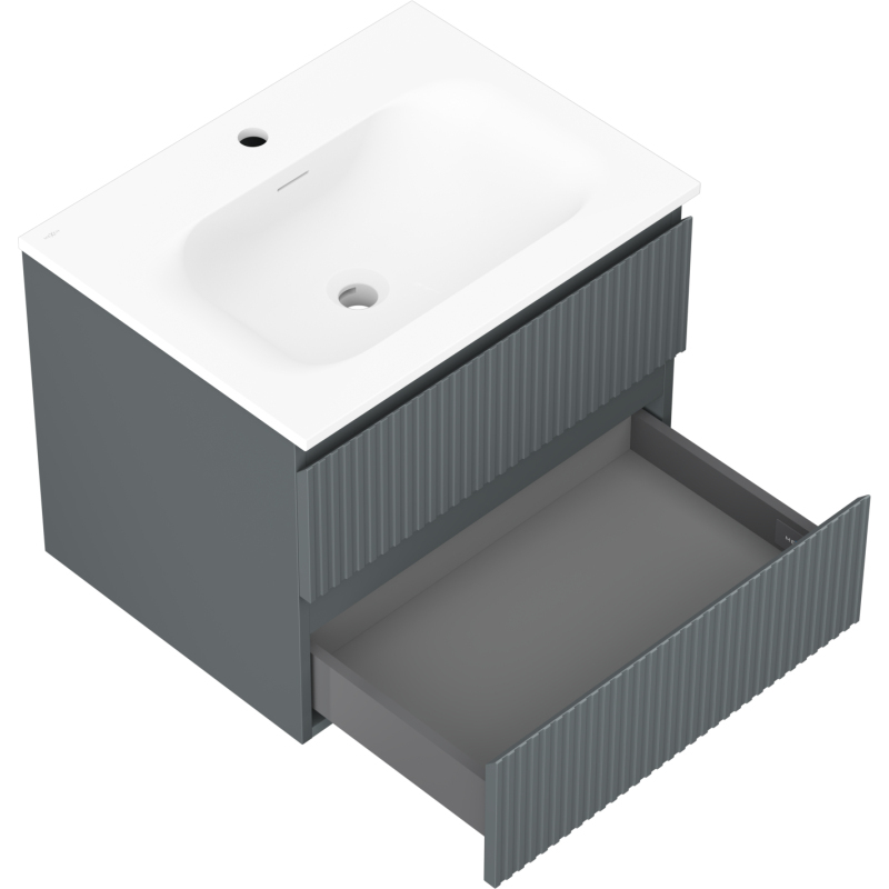 Kúpeľňová skrinka Mexen Rivel 60 cm s umývadlom Vela, 2 zásuvky, drážkovaná, grafit matný/biela matná - 91A20-06047-2-BFF66-W23M0