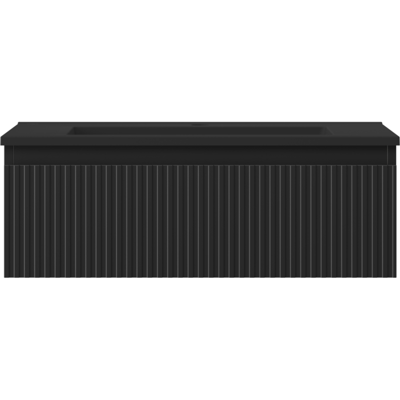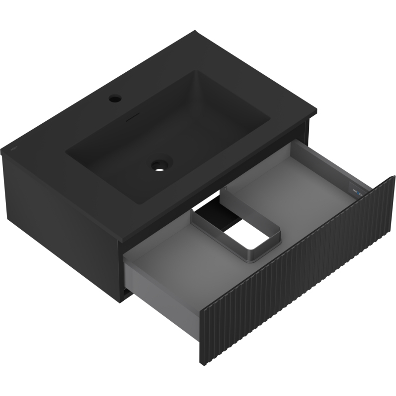 Kúpeľňová skrinka Mexen Rivel 70 cm s umývadlom Otis, 1 zásuvka, drážkovaná, matná čierna - 91A20-07023-1-BF71-W18M71