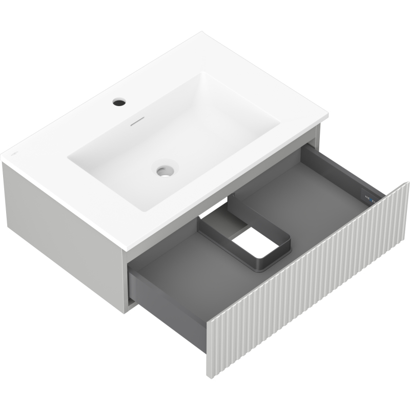 Kúpeľňová skrinka Mexen Rivel 70 cm s umývadlom Otis, 1 zásuvka, drážkovaná, matne šedá/matne biela - 91A20-07023-1-BF62-W18M01