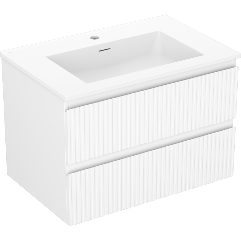 Kúpeľňová skrinka Mexen Rivel 70 cm s umývadlom Otis, 2 zásuvky, drážkovaná, matná biela - 91A20-07047-2-BFF01-W18M01