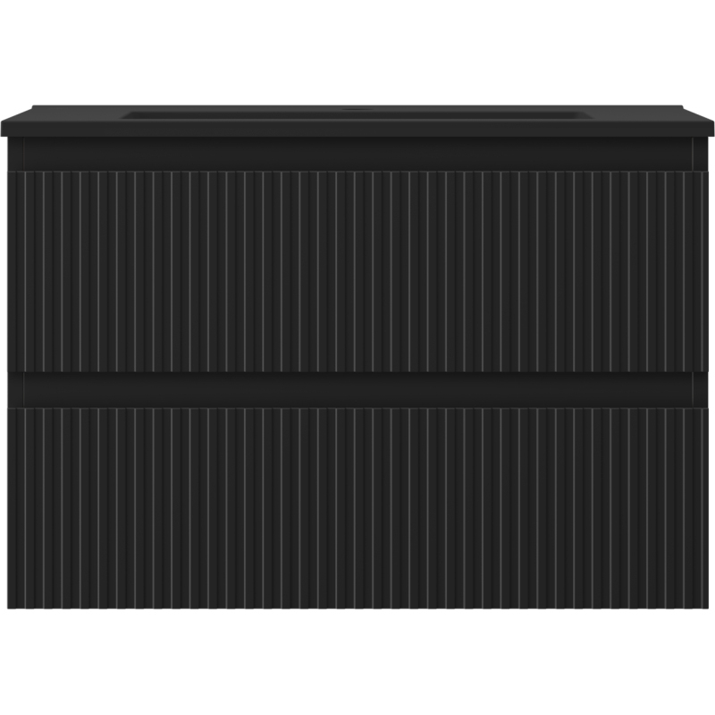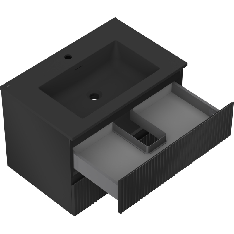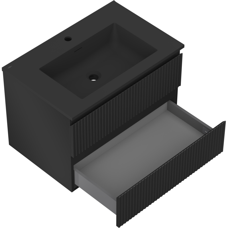 Kúpeľňová skrinka Mexen Rivel 70 cm s umývadlom Otis, 2 zásuvky, drážkovaná, matná čierna - 91A20-07047-2-BFF71-W18M71