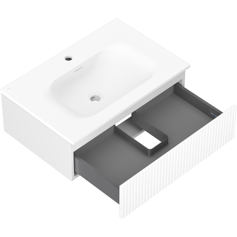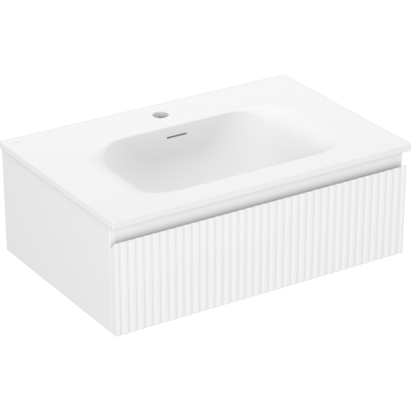 Kúpeľňová skrinka Mexen Rivel 70 cm s umývadlom Vela, 1 zásuvka, drážkovaná, matná biela - 91A20-07023-1-BF01-W23M01