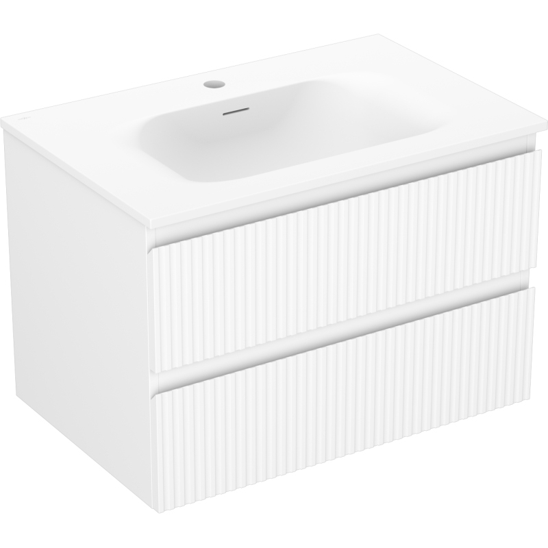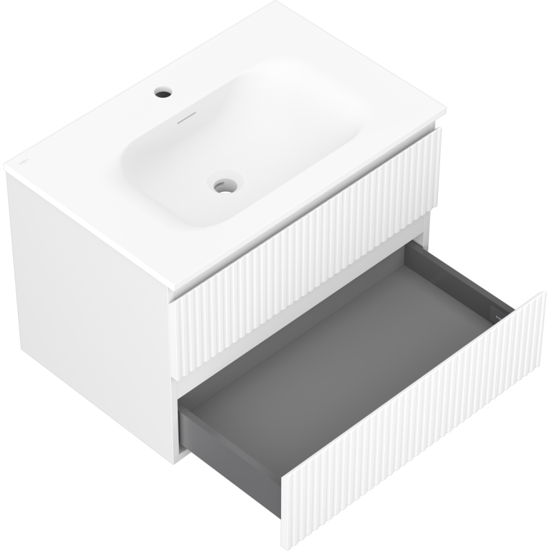 Kúpeľňová skrinka Mexen Rivel 70 cm s umývadlom Vela, 2 zásuvky, drážkovaná, matná biela - 91A20-07047-2-BFF01-W23M01