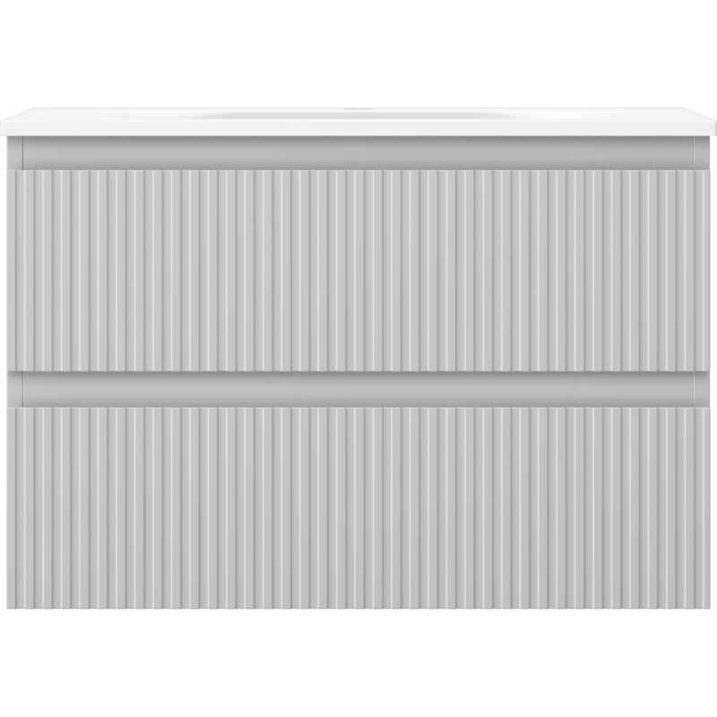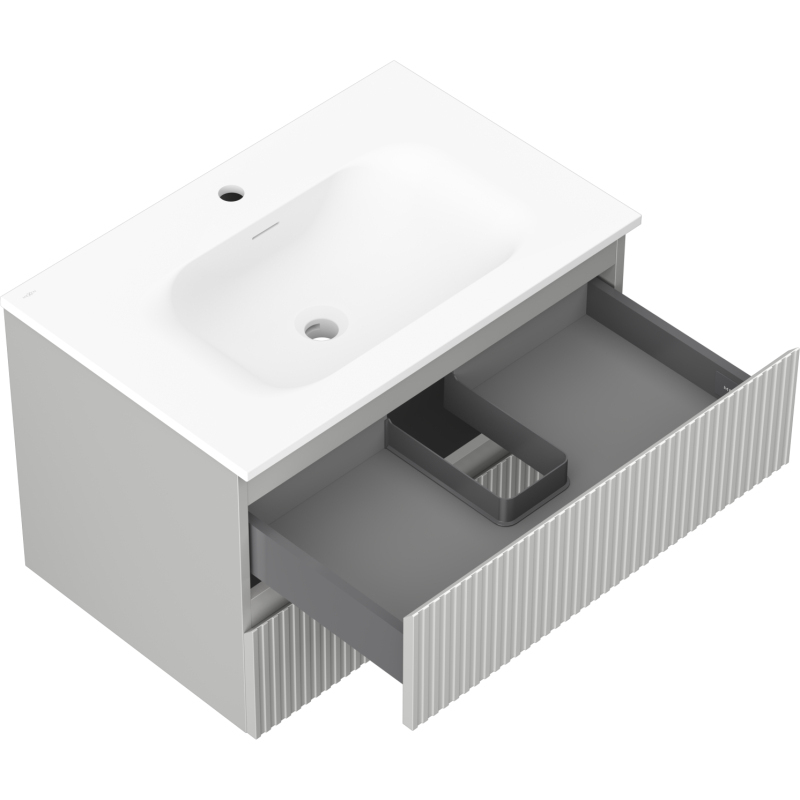 Kúpeľňová skrinka Mexen Rivel 70 cm s umývadlom Vela, 2 zásuvky, drážkovaná, matne šedá/matne biela - 91A20-07047-2-BFF62-W23M01