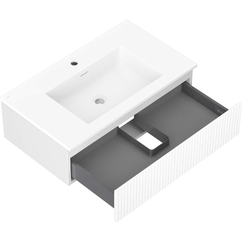 Kúpeľňová skrinka Mexen Rivel 80 cm s umývadlom Otis, 1 zásuvka, drážkovaná, matná biela - 91A20-08023-1-BF01-W18M01