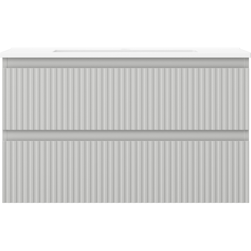 Kúpeľňová skrinka Mexen Rivel 80 cm s umývadlom Otis, 2 zásuvky, drážkovaná, matne šedá/matne biela - 91A20-08047-2-BFF62-W18M01
