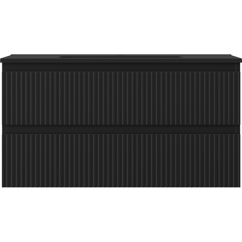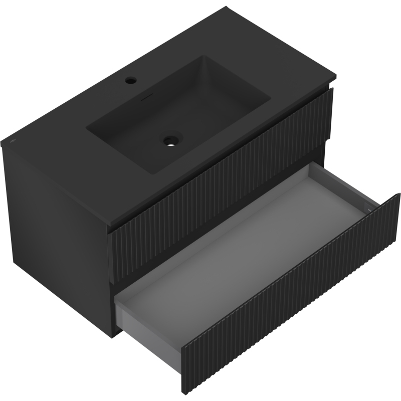Kúpeľňová skrinka Mexen Rivel 90 cm s umývadlom Otis, 2 zásuvky, drážkovaná, matná čierna - 91A20-09047-2-BFF71-W18M71