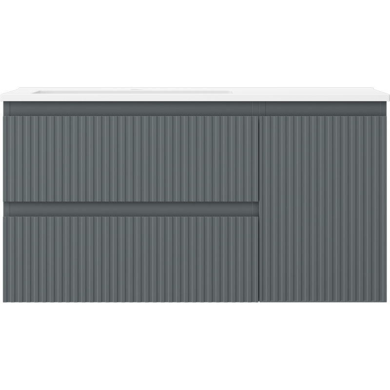 Kúpeľňová skrinka Mexen Rivel 90 cm s umývadlom Otis ľavým, 2S, 1D, drážkovaná, grafit matný/biela matná - 91A23-09047-3-BBFFF66-W18L01