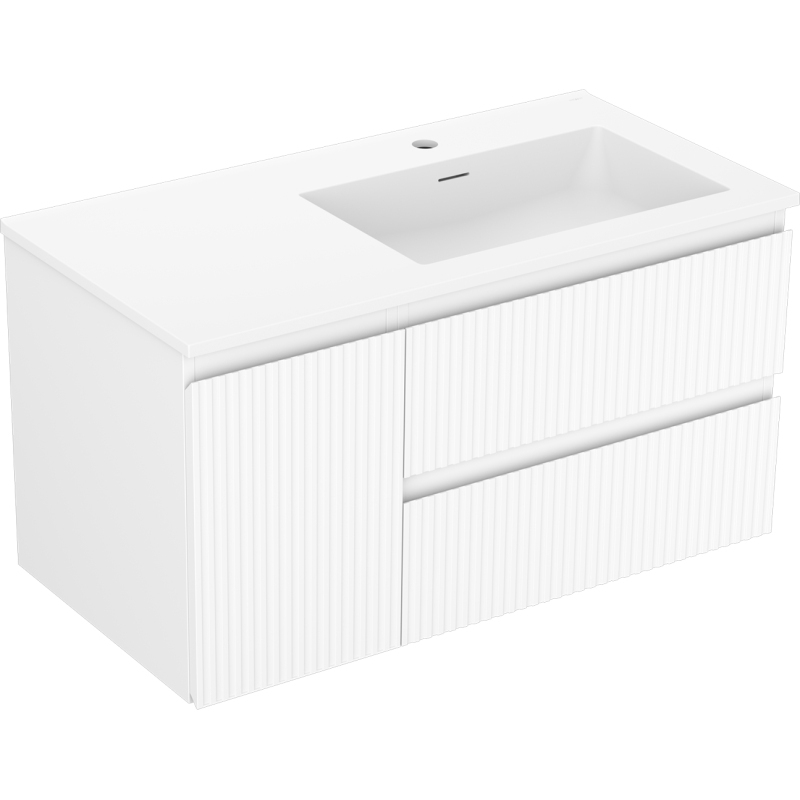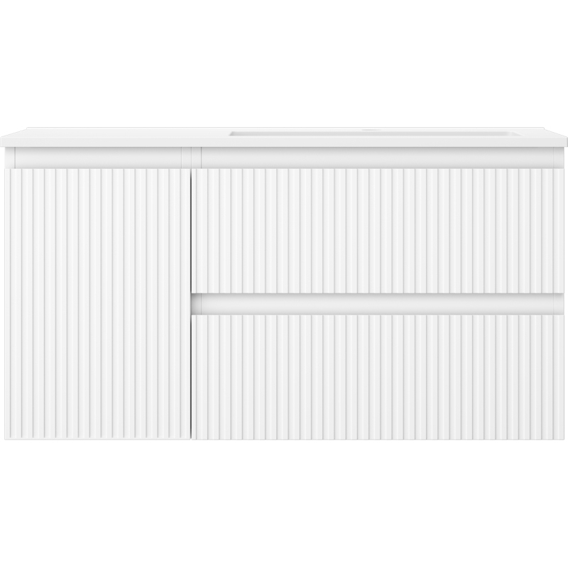 Kúpeľňová skrinka Mexen Rivel 90 cm s umývadlom Otis pravým, 2S, 1D, drážkovaná, matná biela - 91A23-09047-3-BBFFF01-W18P01