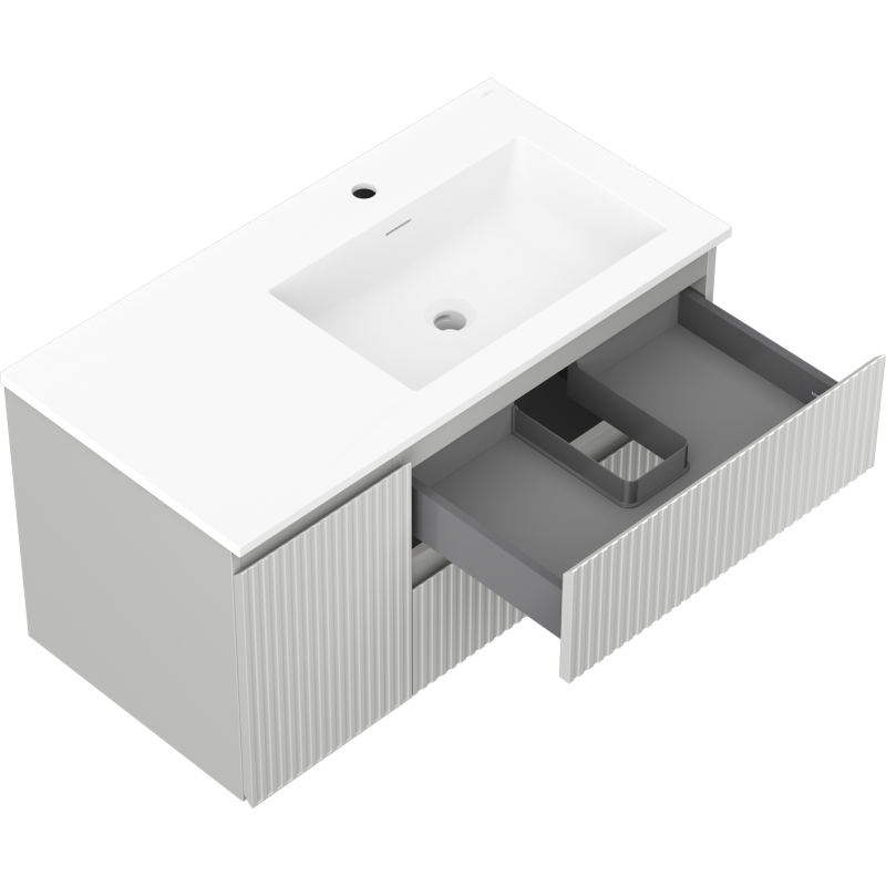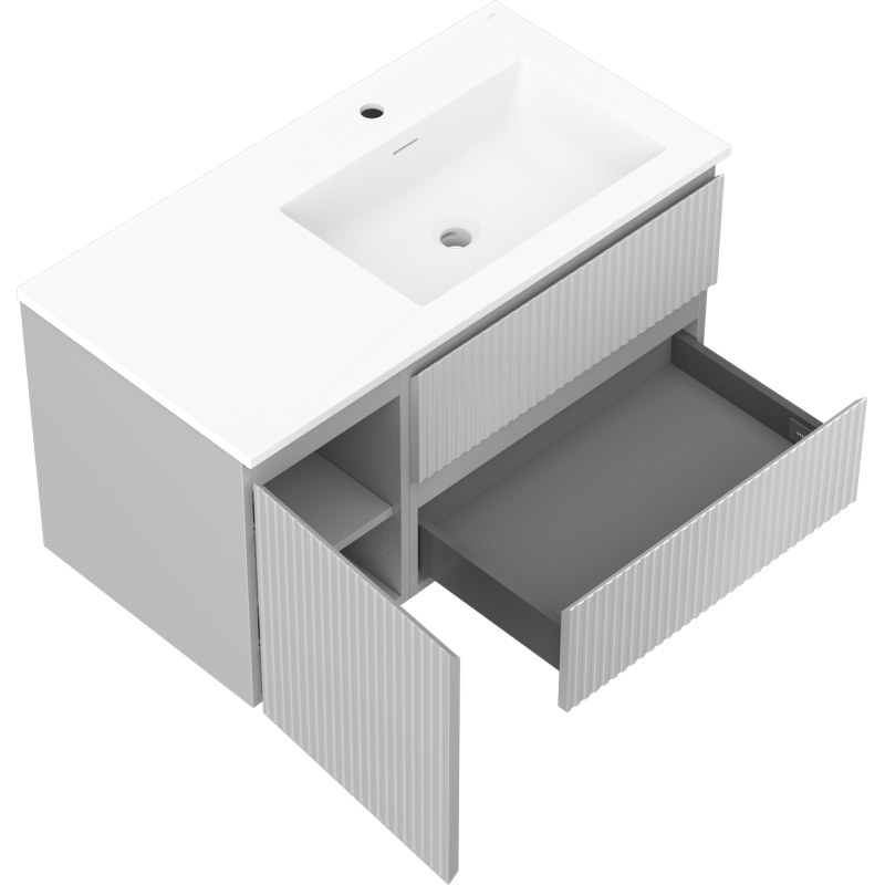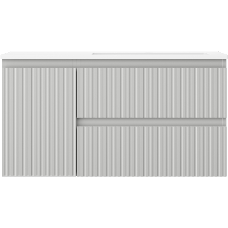 Kúpeľňová skrinka Mexen Rivel 90 cm s umývadlom Otis pravým, 2S, 1D, drážkovaná, matná šedá/matná biela - 91A23-09047-3-BBFFF62-W18P01