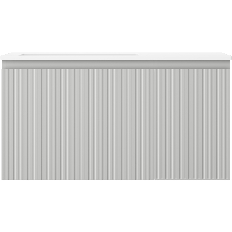 Kúpeľňová skrinka Mexen Rivel 90 cm s umývadlom Otis vľavo, 1S, 1D, drážkovaná, matná šedá/matná biela - 91A23-09047-3-BBFF62-W18L01