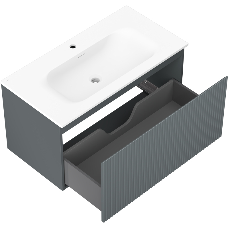 Kúpeľňová skrinka Mexen Rivel 90 cm s umývadlom Vela, 1 zásuvka, drážkovaná, grafit matný/biela matná - 91A20-09047-1-BF66-W23M01