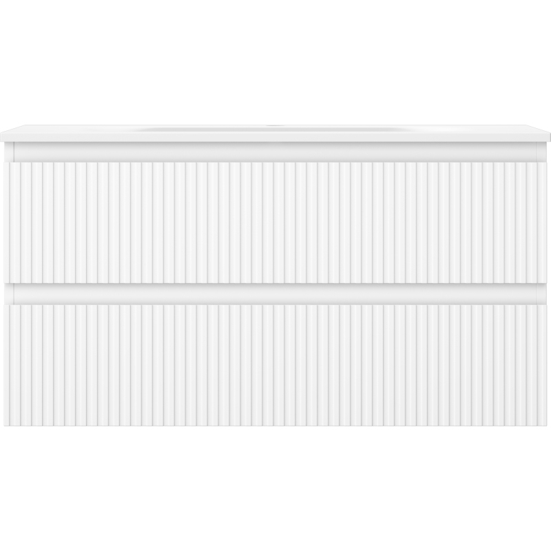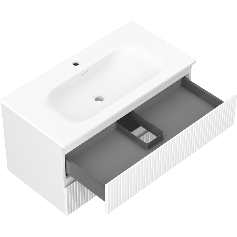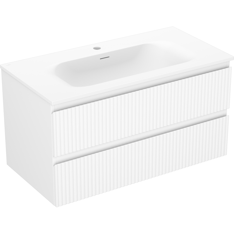 Kúpeľňová skrinka Mexen Rivel 90 cm s umývadlom Vela, 2 zásuvky, drážkovaná, matná biela - 91A20-09047-2-BFF01-W23M01