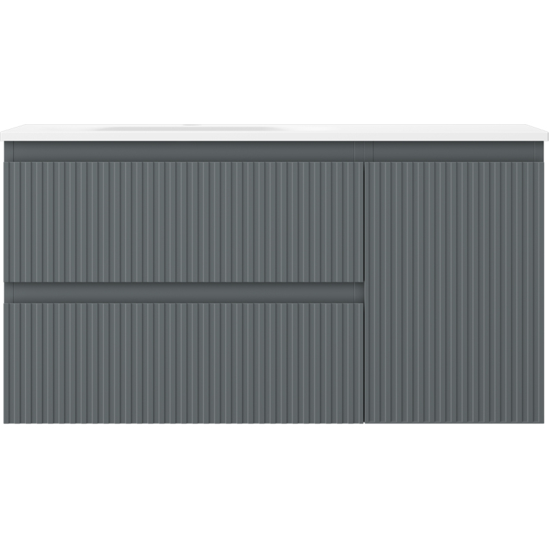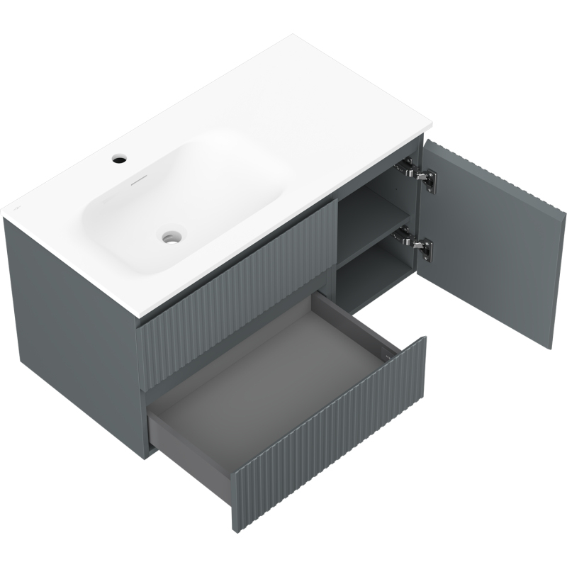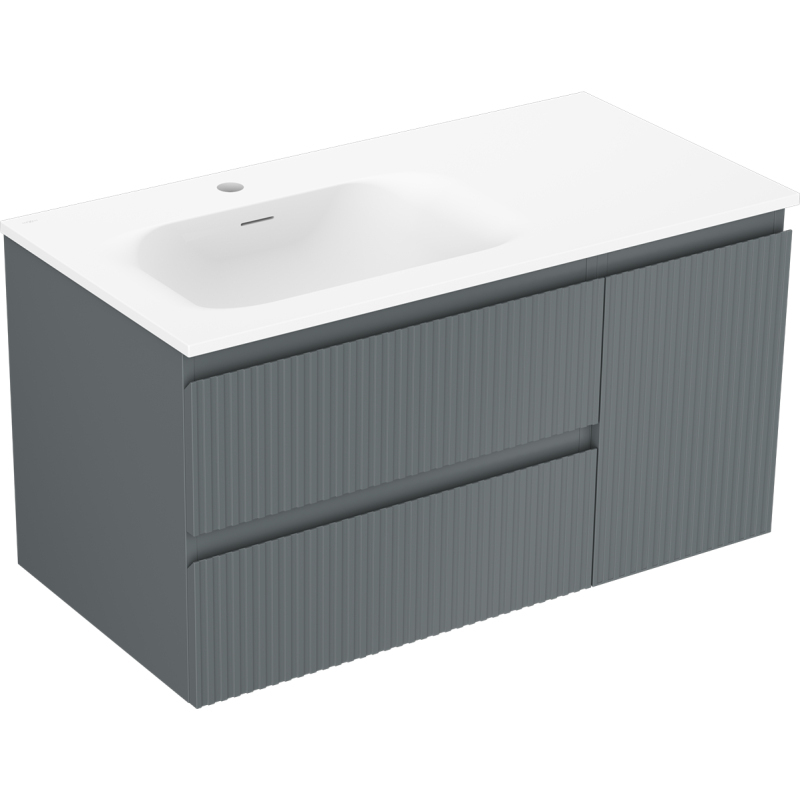 Kúpeľňová skrinka Mexen Rivel 90 cm s umývadlom Vela ľavým, 2S, 1D, drážkovaná, grafit matný/biela matná - 91A23-09047-3-BBFFF66-W23L01