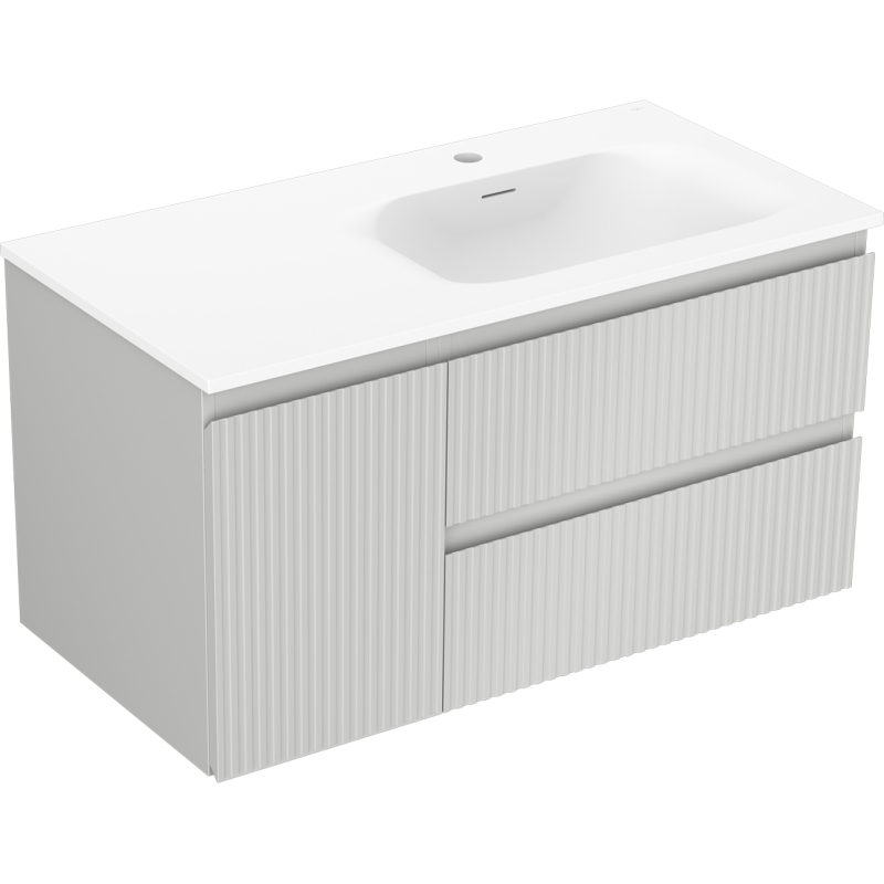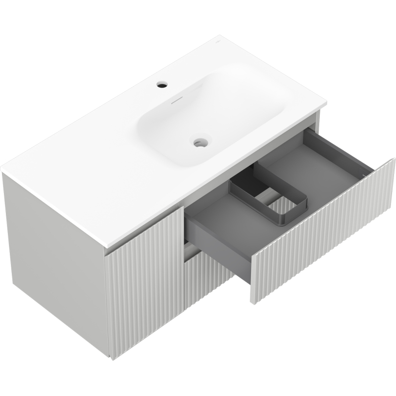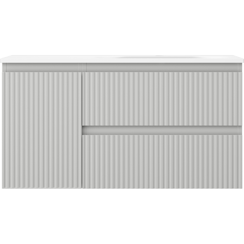 Kúpeľňová skrinka Mexen Rivel 90 cm s umývadlom Vela pravá, 2S, 1D, drážkovaná, matná šedá/matná biela - 91A23-09047-3-BBFFF62-W23P01