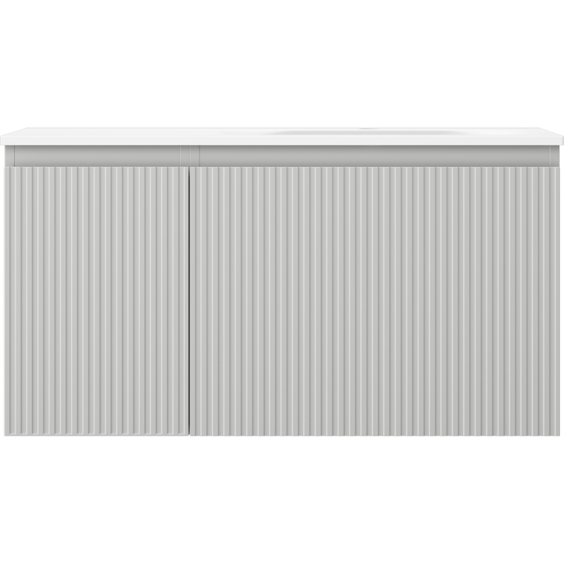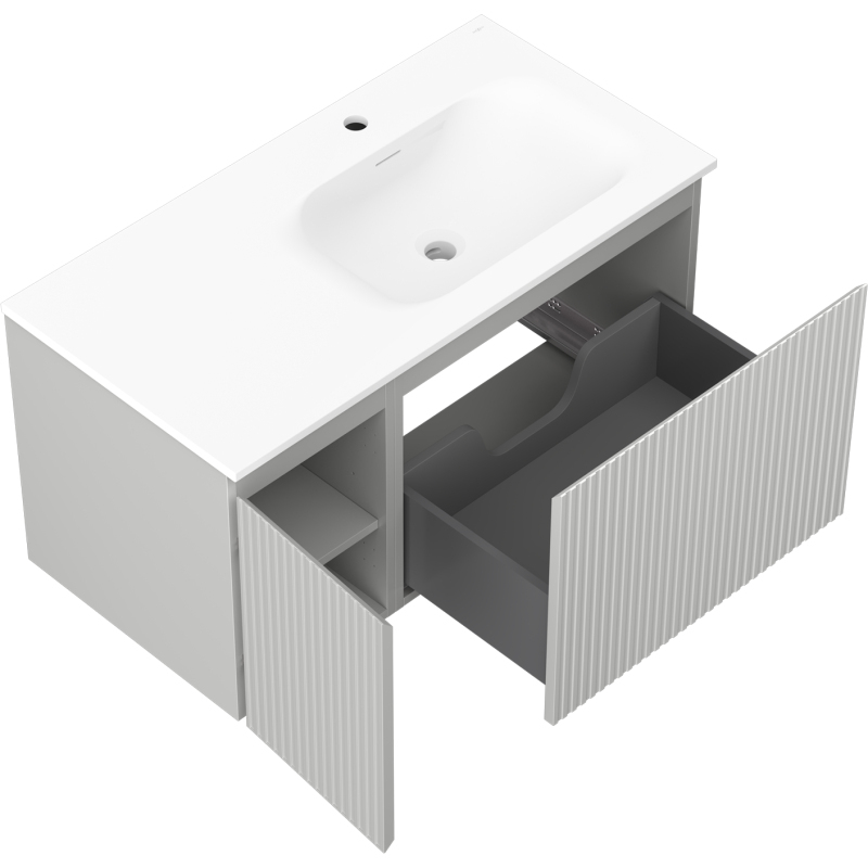 Kúpeľňová skrinka Mexen Rivel 90 cm s umývadlom Vela pravé, 1S, 1D, drážkovaná, matná šedá/matná biela - 91A23-09047-3-BBFF62-W23P01