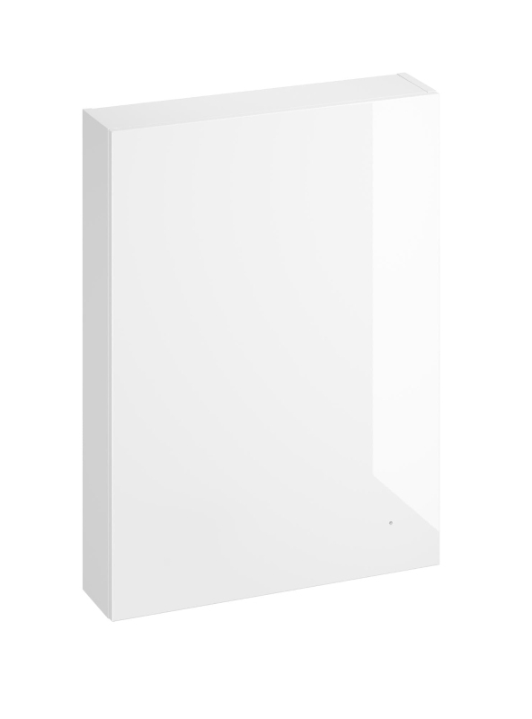 Závesná kúpeľňová skrinka nízka v bielej farbe s lesklým povrchom o rozmere 59,4x80x14 cm. Povrch v prevedení lamino. Dvierka majú ľavé aj pravé otváranie.