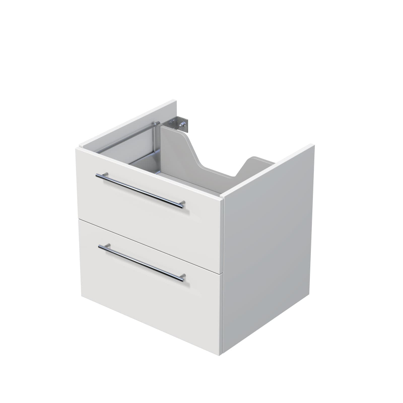 Závesná kúpeľňová skrinka pod dosku v bielej farbe s matným povrchom o rozmere 60x56x50 cm. S lakovaným povrchom s úpravou proti zanechaniu odtlačkov prstov. S plnovýsuvom a doťahom.