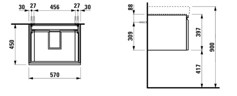 Kúpeľňová skrinka pod umývadlo Laufen Pro S 57x45x39 cm biela lesk H4833710964751