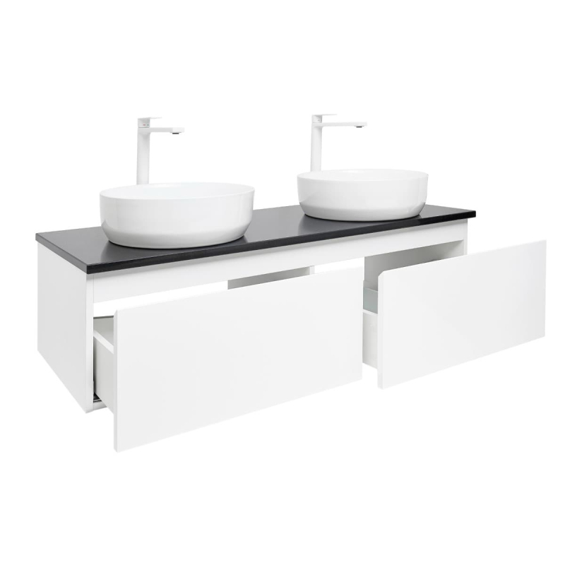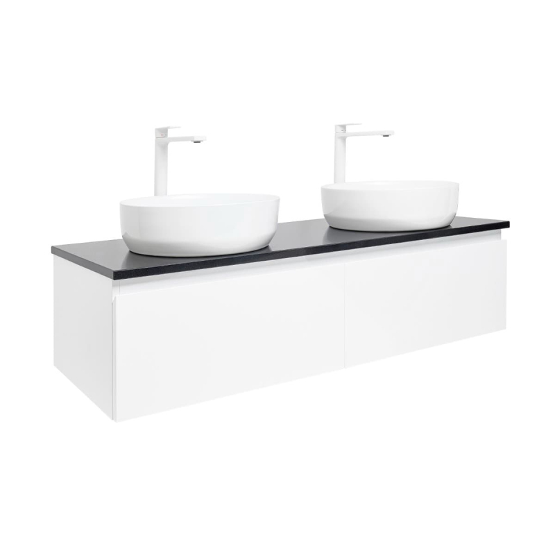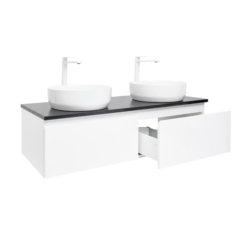Kúpeľňová skrinka s kamennou krycou doskou SAT B-Way 119x30x45 cm biela lesk BWAY120WU2B2B