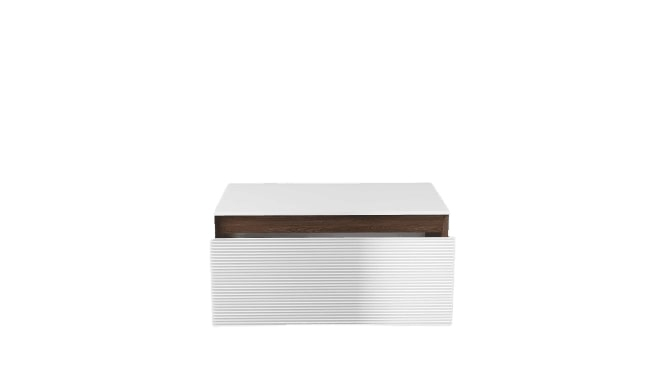Závesná kúpeľňová skrinka s krycou doskou v dekore orech s matným povrchom o rozmere 79x30x45 cm. Povrch v prevedení lamino.