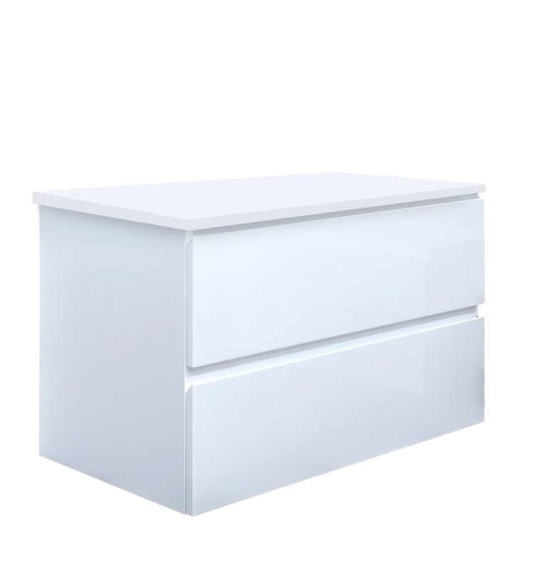 Závesná kúpeľňová skrinka s krycou doskou v bielej farbe s lesklým povrchom o rozmere 79x50x45 cm. S lakovaným povrchom.