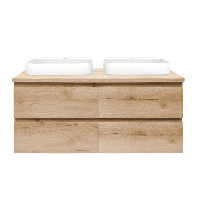 Závesná kúpeľňová skrinka s umývadlom a krycou doskou vo farebnom prevedení dub medový s matným povrchom o rozmere 119x50x45 cm. Povrch v prevedení lamino.