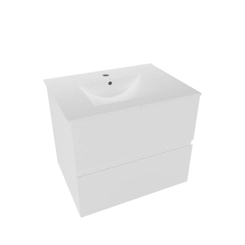 Závesná kúpeľňová skrinka s keramickým umývadlom v bielej farbe s matným povrchom o rozmere 60x50x45,5 cm. Povrch v prevedení lamino.