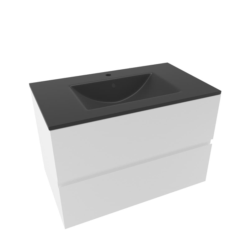 Závesná kúpeľňová skrinka s keramickým umývadlom v bielej farbe s matným povrchom o rozmere 80x50x45,5 cm. Povrch v prevedení lamino.