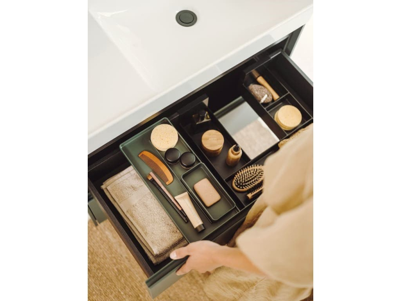 Závesná kúpeľňová skrinka s keramickým umývadlom v zelenej farbe s matným povrchom o rozmere 120x64,5x46 cm. Povrch v prevedení lamino. Plnovýsuv s doťahom, bez sifónu, s vnútorným organizérom.